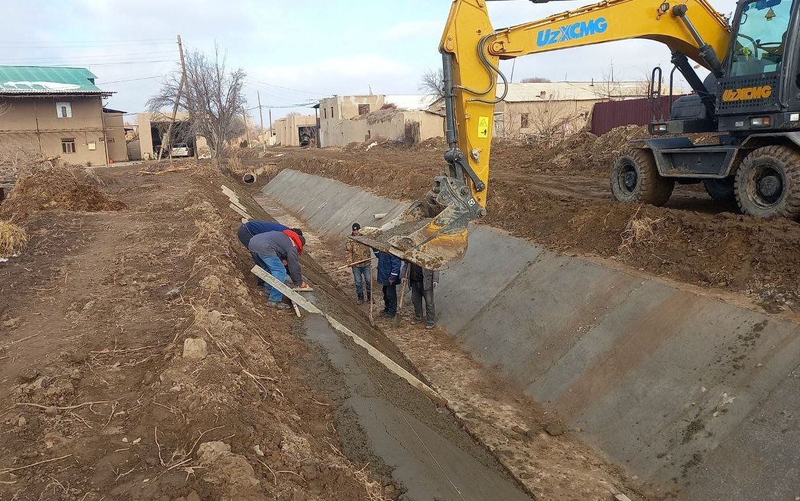 Режага асосан 2026 йилда ушбу ҳудудда 1000 метр узунликдаги ички ариқлар бетонлаштириш белгиланган бўлиб, ҳозирда 330 метр қисмида ишлар якунланган.