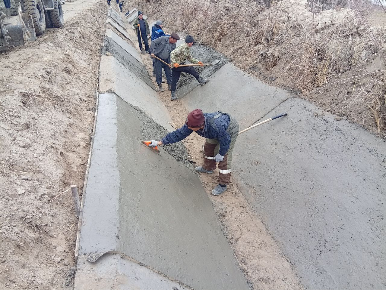 Жумладан, Гурлан тумани “Сув етказиб бериш хизмати” давлат муассасаси томонидан “Навоий” ҳудудидаги ички ариқ бетонланмоқда. Ушбу ариқ узунлиги 2 км бўлиб, мавсум бошидан буён 1,65 км қисмида ишлар тугатилган. Заҳматкаш ишчи гуруҳ томонидан 1 кунда ўртача ҳисобда ариқнинг 105 метр қисми бетонланмоқда.