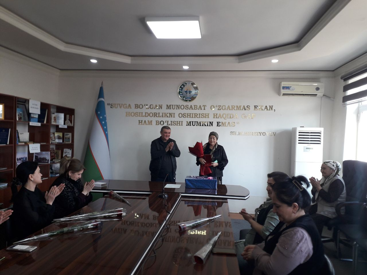 Ушбу қувончли воқеа муносабати билан Шовот тумани ҳокимлигида мукофотлар ўз соҳибаларига топширилди.
