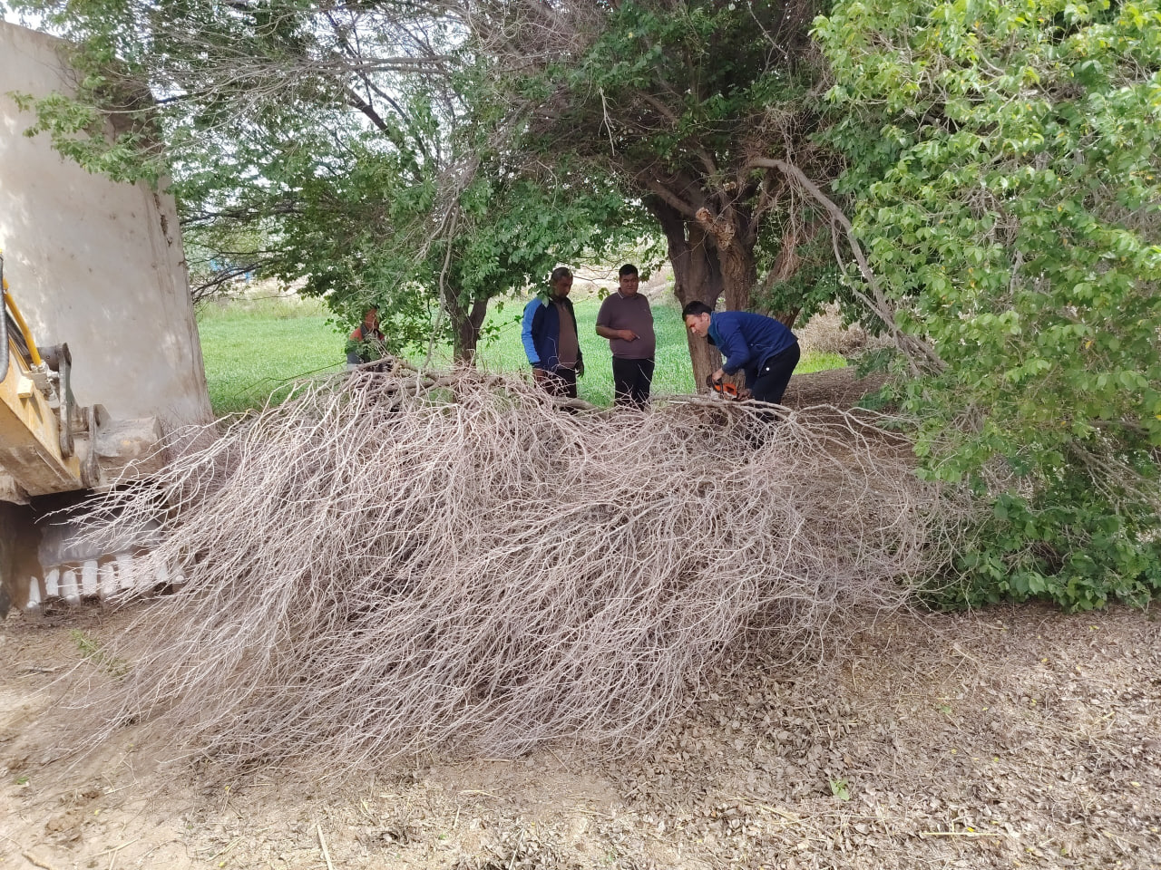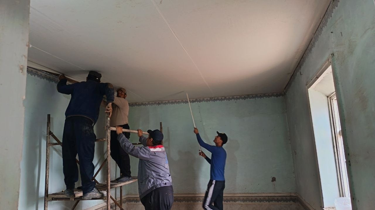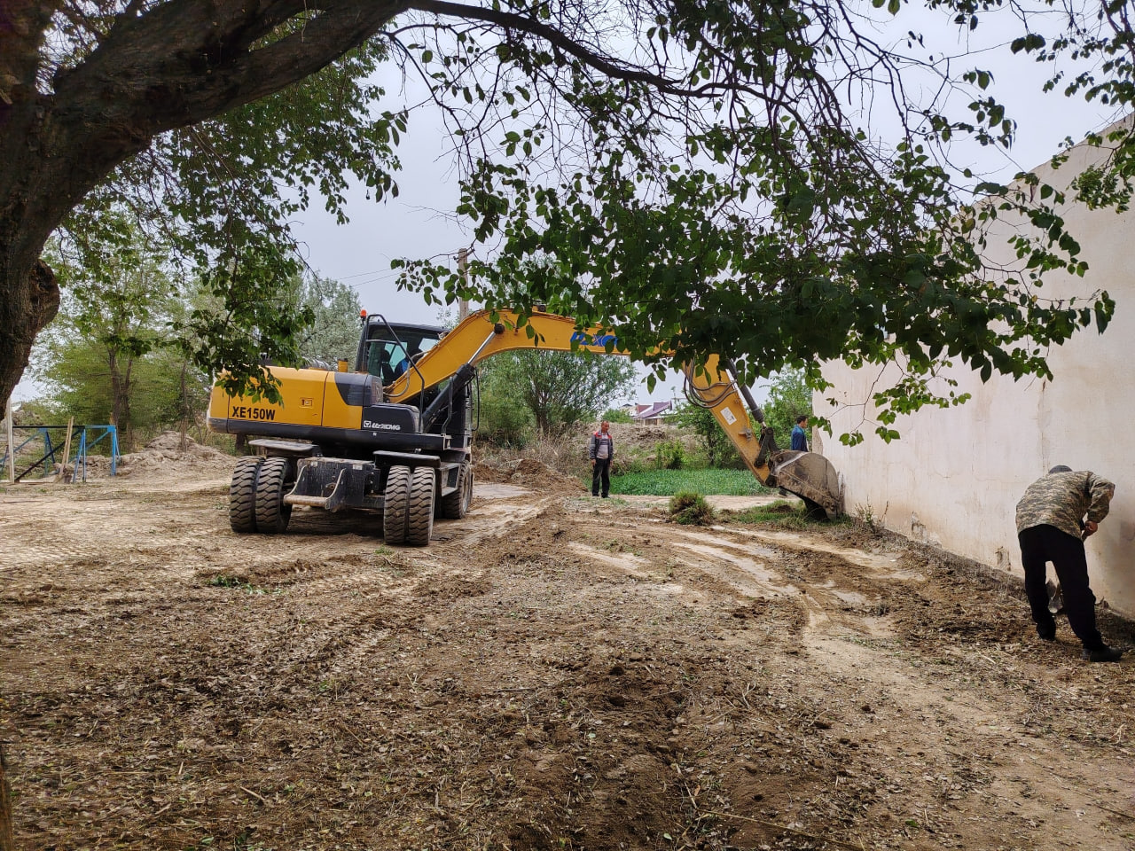 Ҳашар давомида бинонинг ташқи, ички ва том қисмлари таъмирланмоқда. Шунингдек, атрофдаги дарахтларнинг қуриган шох-шаббалари қирқилиб, ҳудудда ободонлаштириш ишлари амалга оширилмоқда.