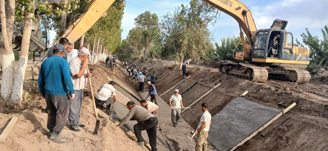 Шу билан бирга, кузги-қишки тадбирлар доирасида давлат муассасаси маблағлари ҳисобидан хўжаликлараро каналларни бетонлаш ишлари жадал олиб борилаяпти.